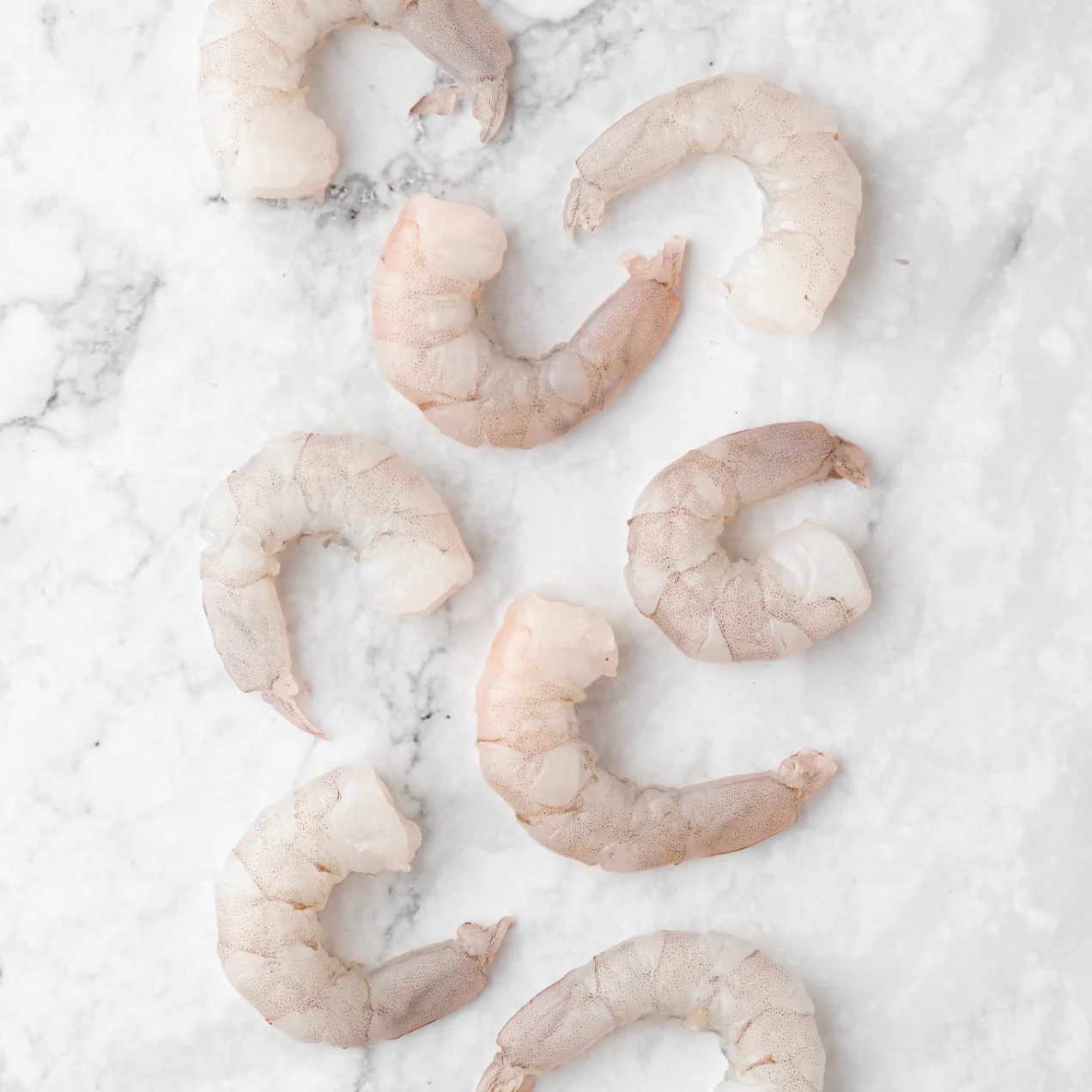 Camarón sin cascara, limpio y listo para cocinar.