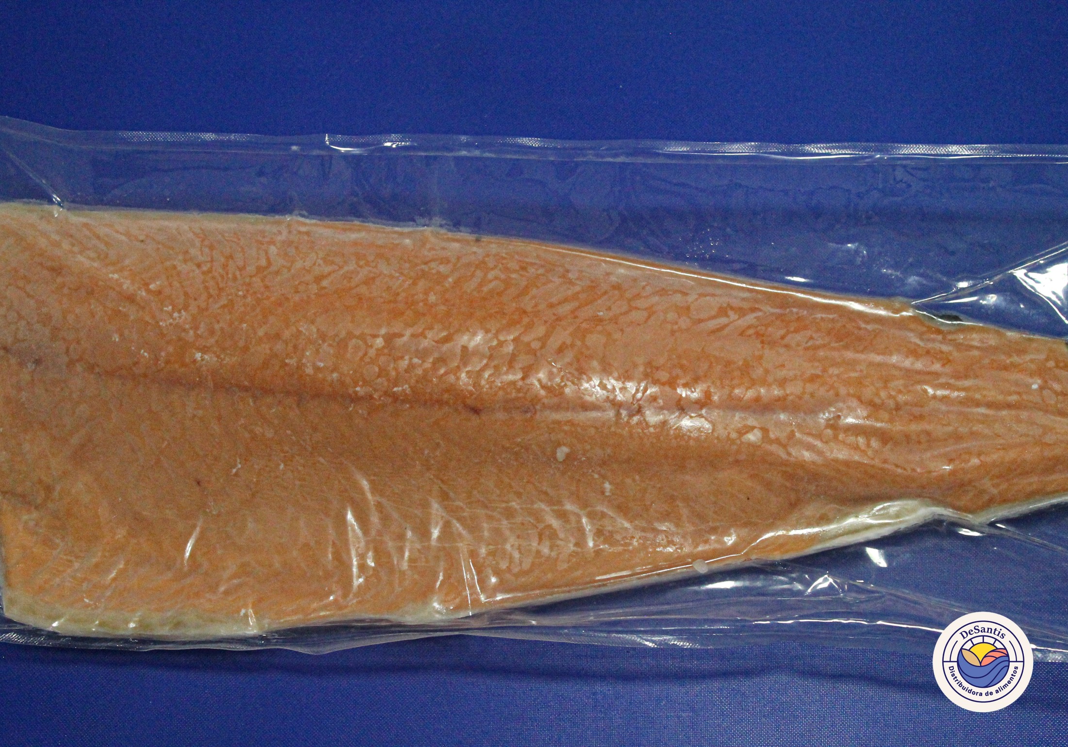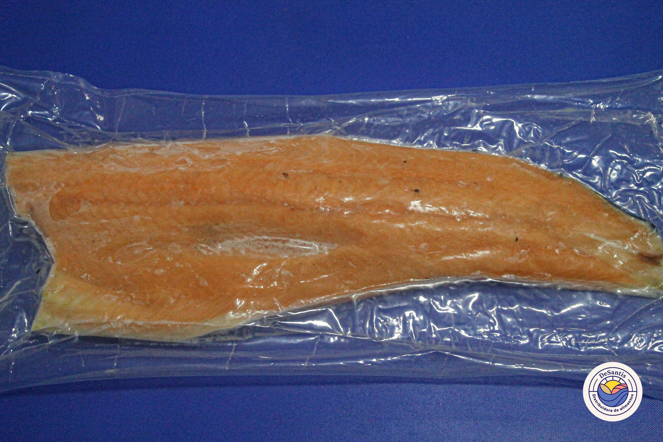Filete de salmón premium marca De Santis, limpio y sin espinas, listo para cocinar al gusto.